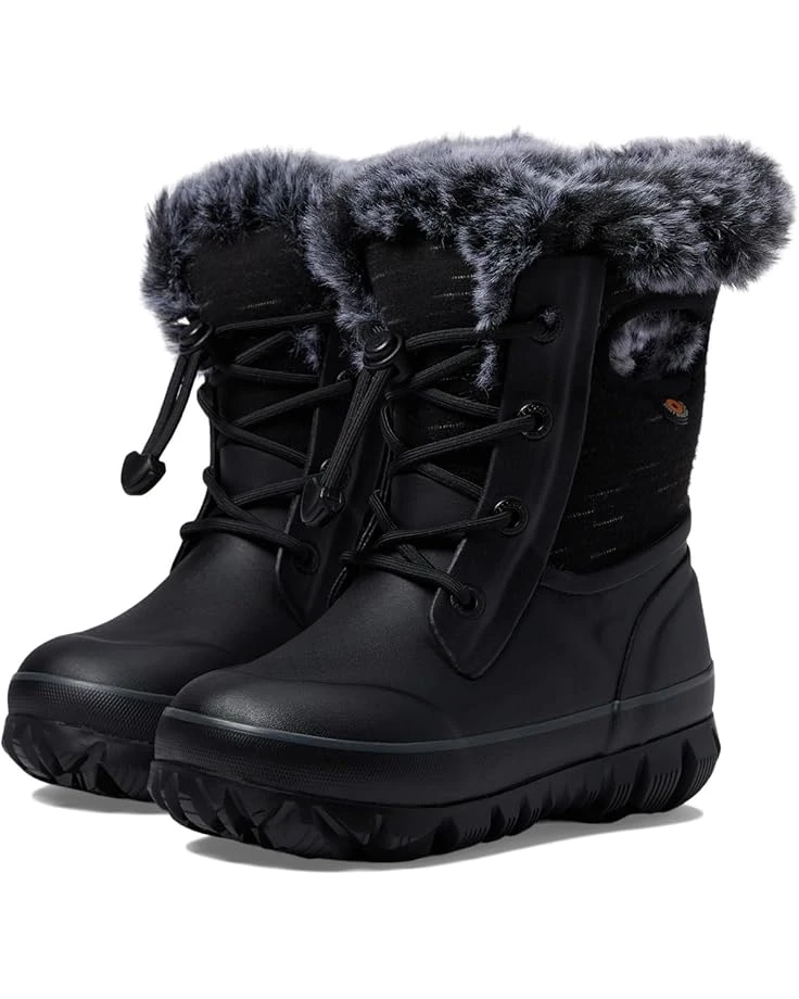 - Let your little one explore the world after the snowfall by wearing Bogs® Kids Arcata II Dash boots. Designed in a pull-on style, the boots have a pull toggle lace closure. A rubber and textile upper with faux fur lining ensures the little feet remain cozy.