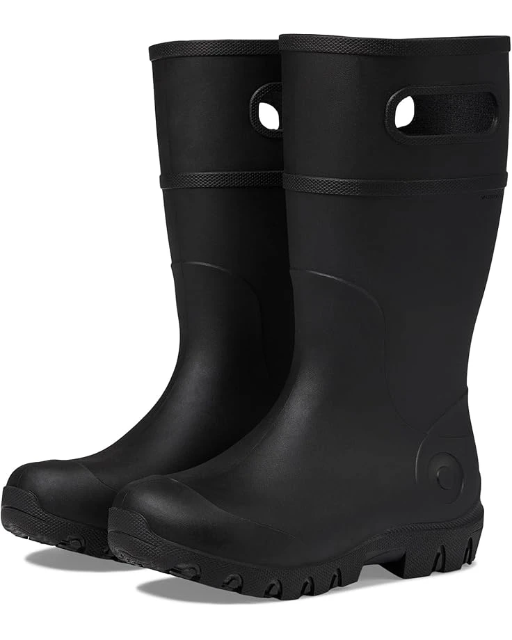 Great boots. Keeps feet dry, and good height. My boys can easily slip these on and off going between the farm field and the house.