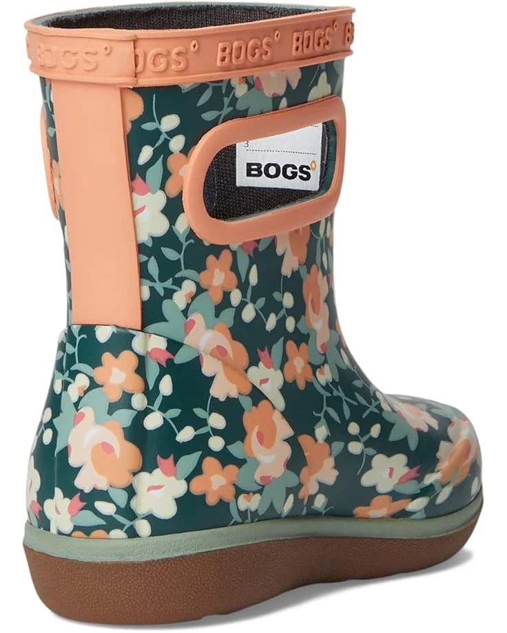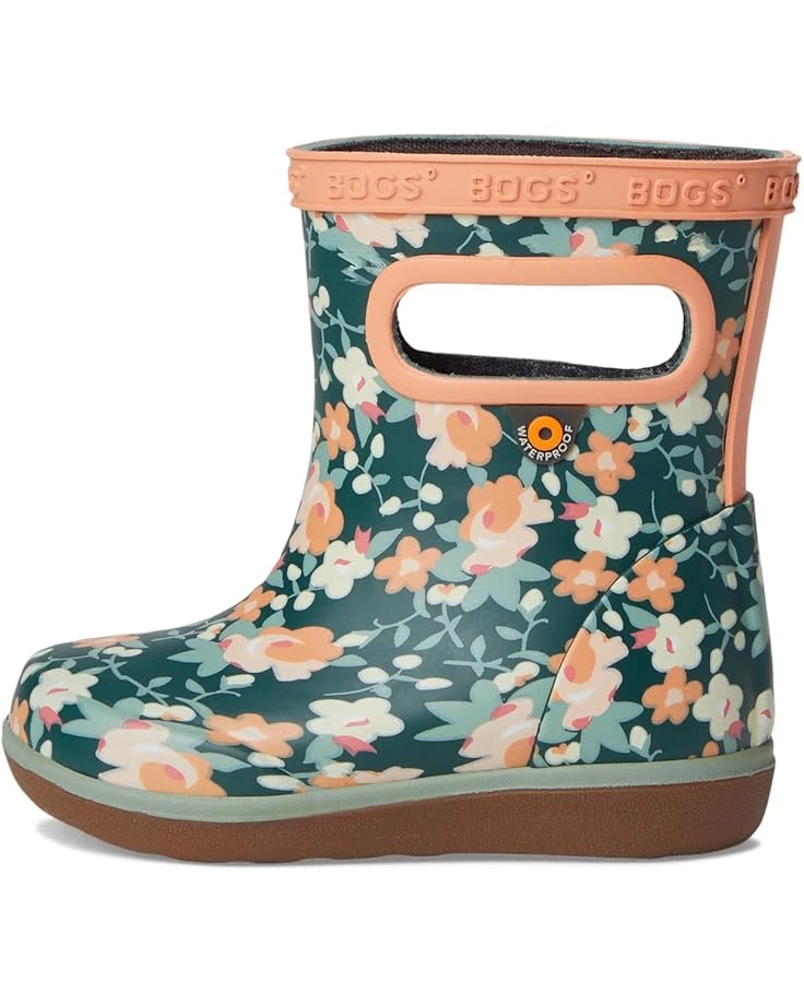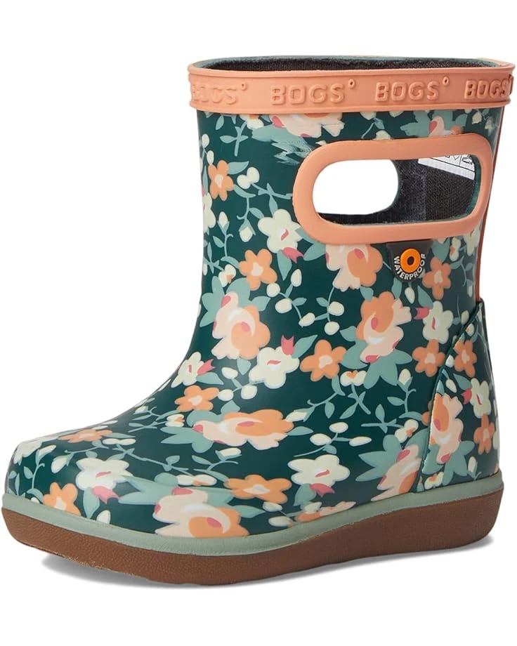 - Crafted with an ultra-soft and flexible rubber upper, the Bogs® Kids Skipper II Small Floral boots are 100% waterproof, keeping your kid’s feet dry all day. These calf-high boots are cleverly named “Skipper,” in case you’re from Maine or California or any place that has boats. Or, if your kids just like to skip. They are made of a fabric lining and a bio-based polyurethane footbed that provides comfort while minimizing environmental impact. The DuraFresh natural bio-technology helps fight odors while the BOGS Max-Wick feature evaporates sweat to keep feet dry. Let your kid enjoy the rainy weather wearing these printed boots.