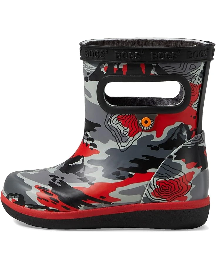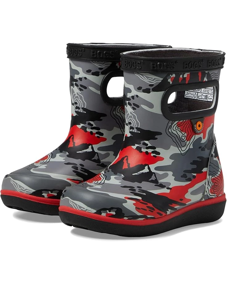 - Your child will love splashing around in the Bogs® Kids Skipper II Topo Camo boots! These boots are not only stylish but also practical, with a waterproof rubber upper, drill lining, and DuraFresh™ technology to keep odors at bay. The BOGS Max-Wick™ technology ensures dry feet, while the BLOOM eco-friendly, removable EVA footbed provides maximum comfort.