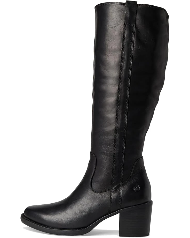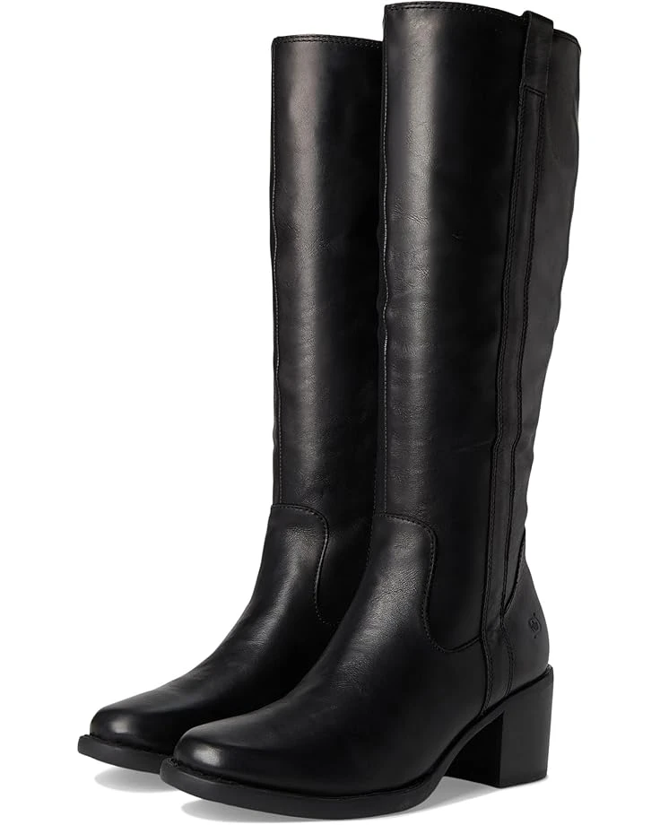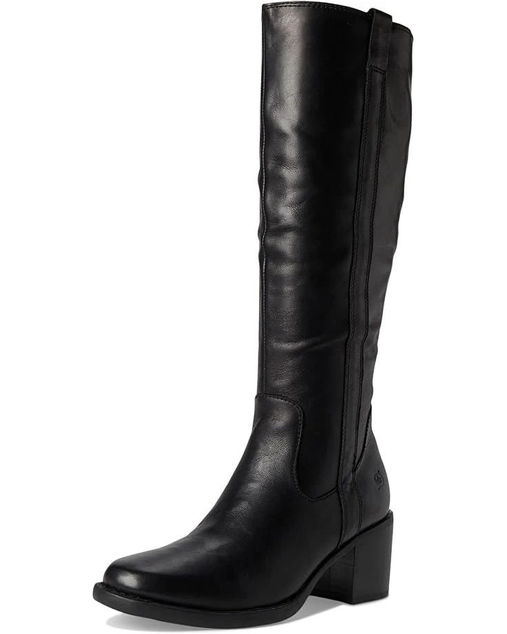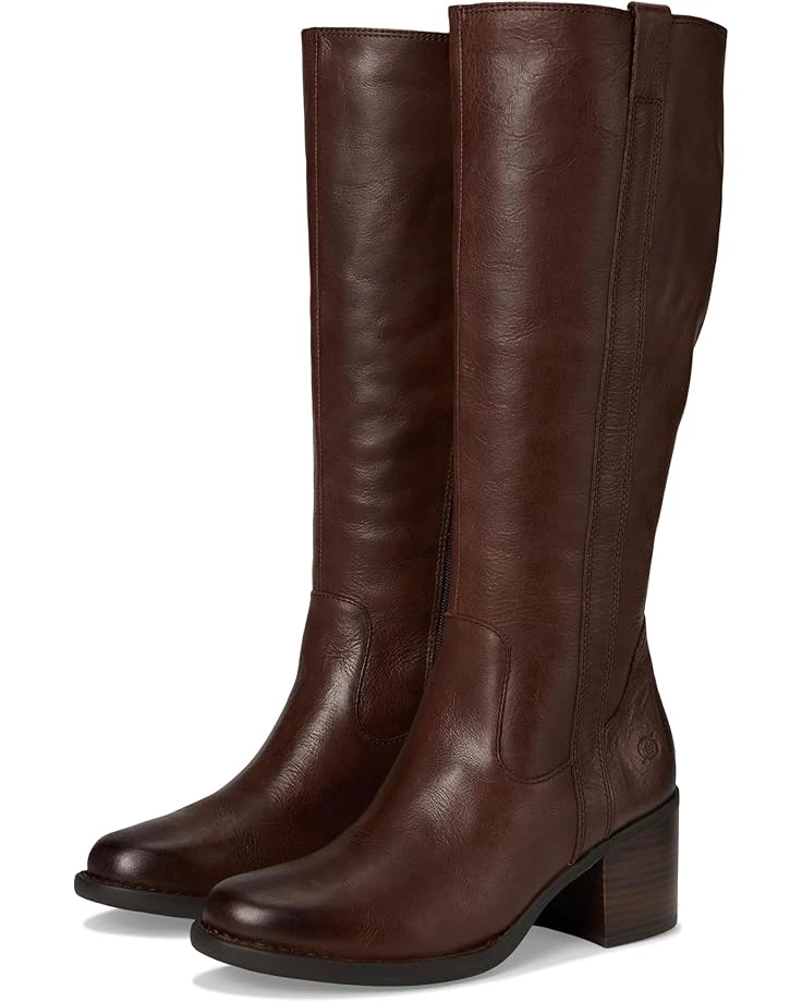 I love Born boots and own several pairs but, it has been a while since I purchased new ones. The foot part of the boot fits as expected and has some nice cushioning and support; the heel is the perfect medium height. I am, however, a little disappointed in the quality of these boots. The leather is of lesser quality than previous Born boots and almost looks fake – it does not even smell like leather. Also, the right calf fits perfectly while the left calf appears to be cut slightly smaller (I can still zip it but it is quite snug). All in all, I like the style and general fit of the boot and will likely keep them.
