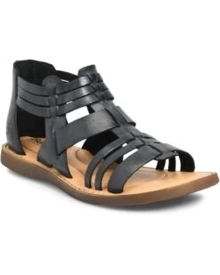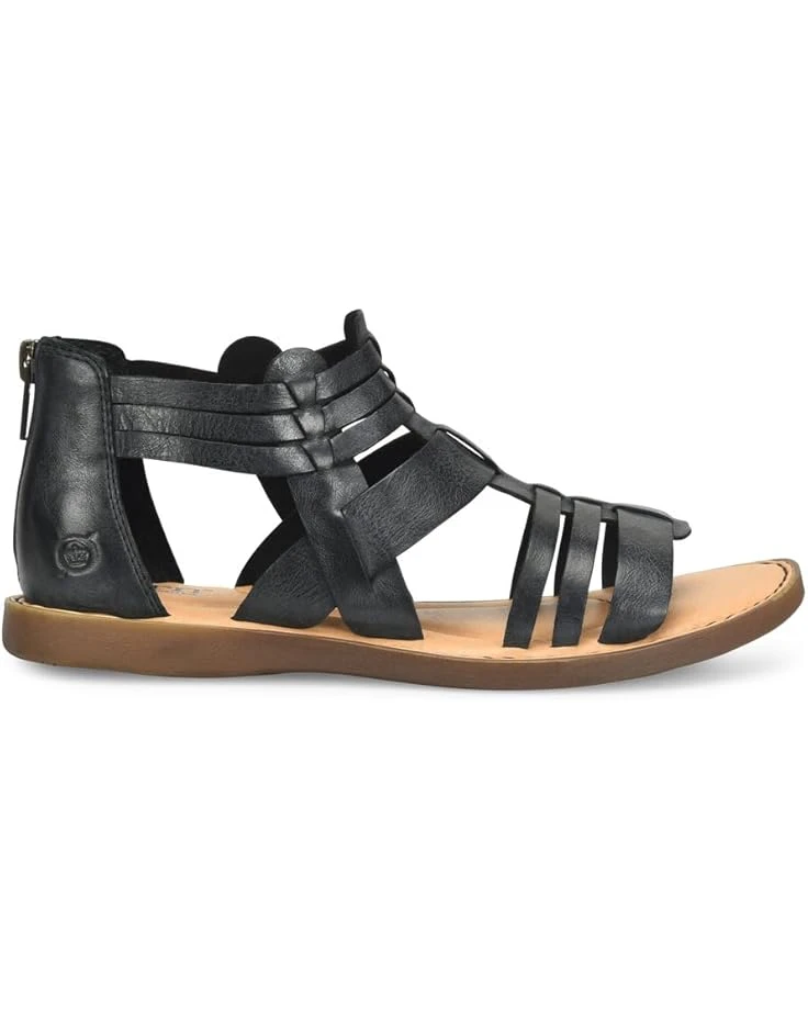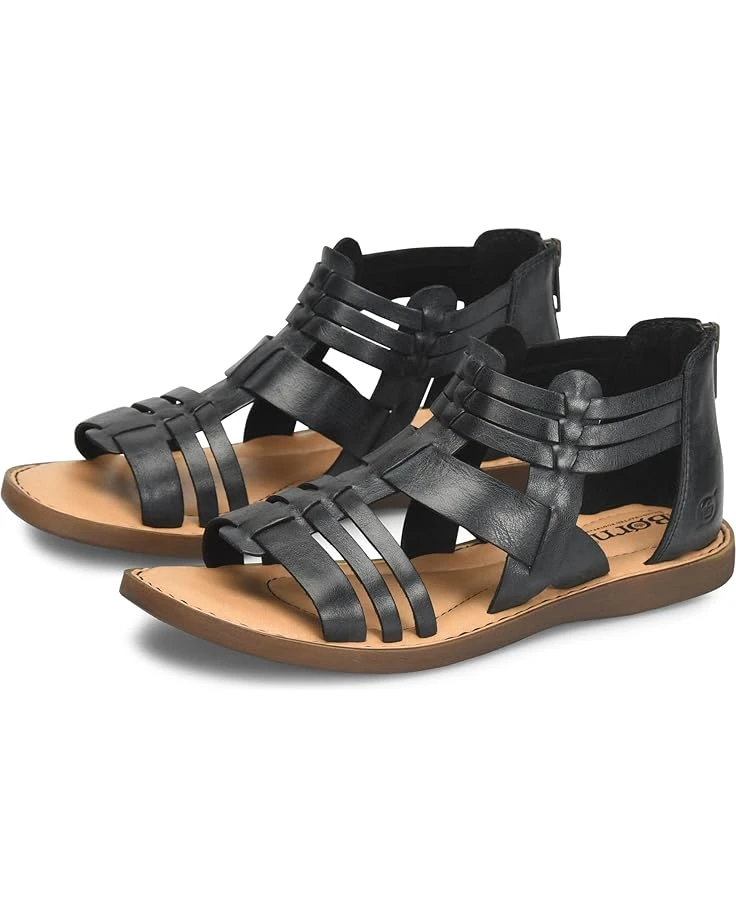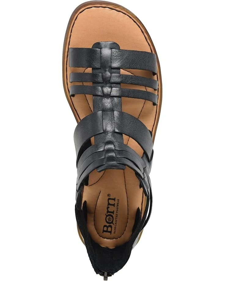 - The Born® Harmel sandals are designed with Italian soft hand-finished leather or metallic leather upper that features a gladiator and huarache design. These strappy sandals are crafted with leather-covered footbed with arch support and foam that provides superior comfort. The Opanka hand-crafted construction offers long-term durability while the breathable soft fabric suede lining keeps your feet cool and comfortable. These leather flats are perfect to pair with different outfits and styles.