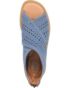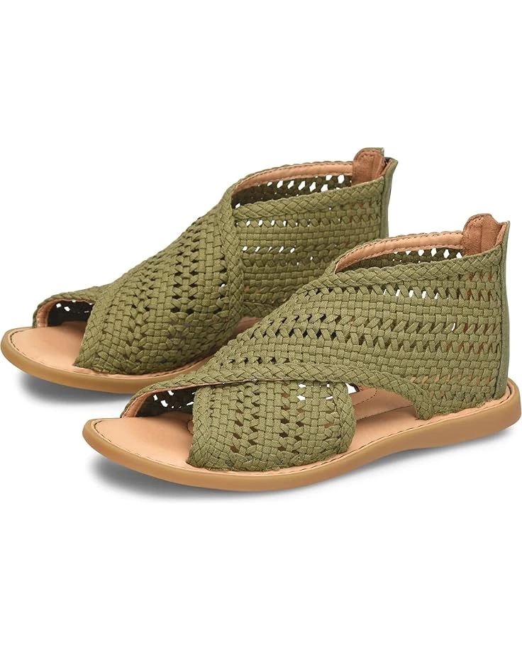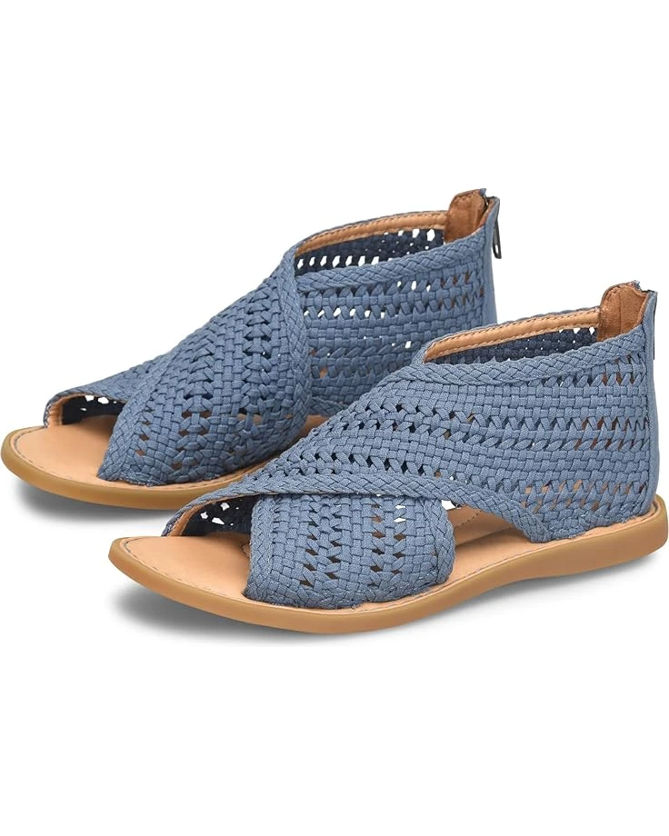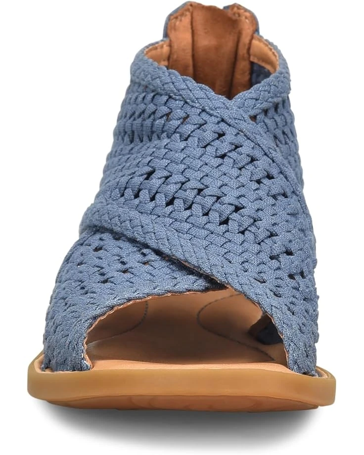 - One of our customer-favorite silhouettes, now in a soft, naturally-inspired woven design. The Born® Iwa Mac is the newest edition of our popular Iwa cross-front sandal, with the same plush footbed and zip-on ease of the original. Opanka hand crafted construction with soft hand-finished woven fabric upper. Breathable combination lining of fabric suede and unlined sections. Features round, open-toe design and zipper closure at the back. Leather covered cushioned footbed with extra foam for added comfort.