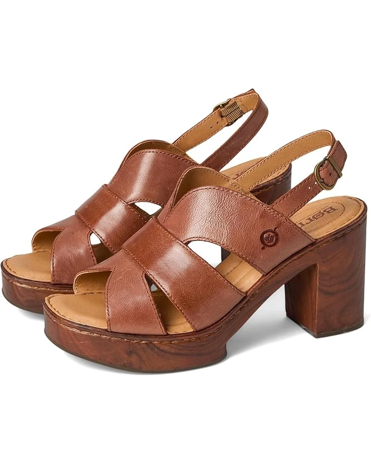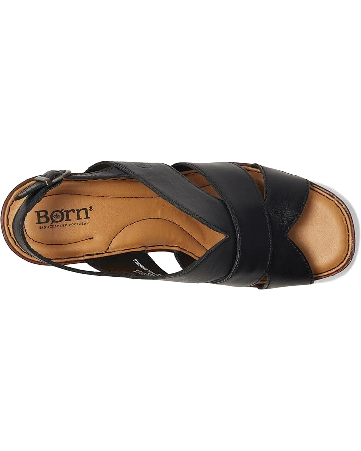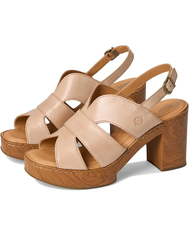 - The Born® Nassau sandal is crafted for comfort, featuring a padded footbed that ensures you can wear them all day with ease. Set on a platform, this essential sandal features an adjustable ankle strap for stability and perfect fit. Style it with flared jeans and a peasant top for a perfect boho-chic look. Crafted from a soft hand-finished combination full grain leather and elastic fabric upper, breathable soft microfiber faux suede lining, and cushioned microfiber covered footbed with extra foam for added comfort. Its inside has Opanka handcrafted construction and high-traction lightweight rubber outsole with textured wood-grain wrapped heel and platform.