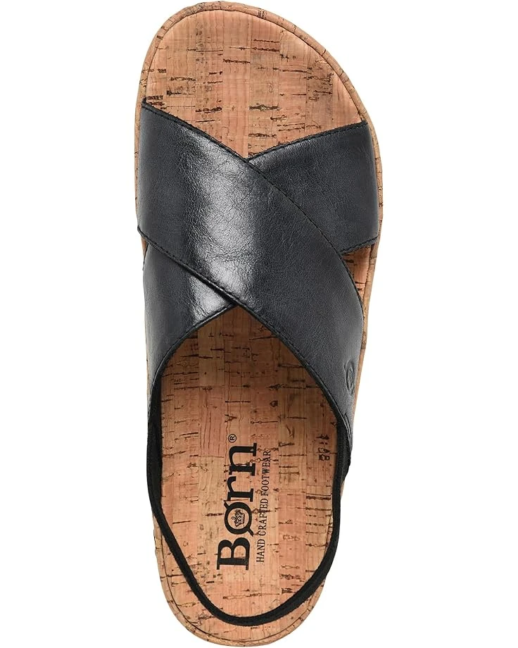 - Let your feet sink into lightweight wonder wearing the Børn® Sandra Sandals. The pull-on footwear features soft hand-finished leather or suede leather upper construction with elasticized slingback strap closure.