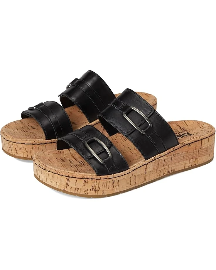 - Get ready to meet your new summer essential: the Børn® SOLINA! Offered in timeless neutral leathers this sandal delivers unmatched comfort with every step. Crafted from leather upper, suede lining, and cushioned natural cork covered footbed with extra foam for added comfort. Featuring open round toe, inside Opanka handcrafted construction, double strap detailing, and platform heel. Elevate your summer style with the perfect blend of elegance and ease.