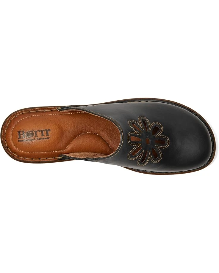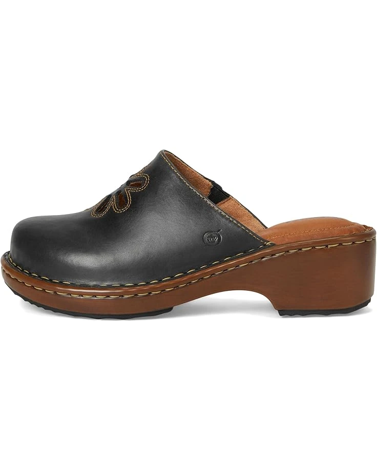 - Kick-off spring in the Born® Torry clogs embellished with a charming floral cutout design. The hand-finished laser-cut full-grain leather upper ensures easy slip-on and off. These heeled clogs are made of a breathable soft fabric lining and a soft leather-covered footbed with arch cookie and extra foam for added comfort. The Tru Opanka handcrafted construction provides added durability. You’ll appreciate the flexible, comfortable fit of these low-top clogs all season long, and in the fall when the days begin to cool.