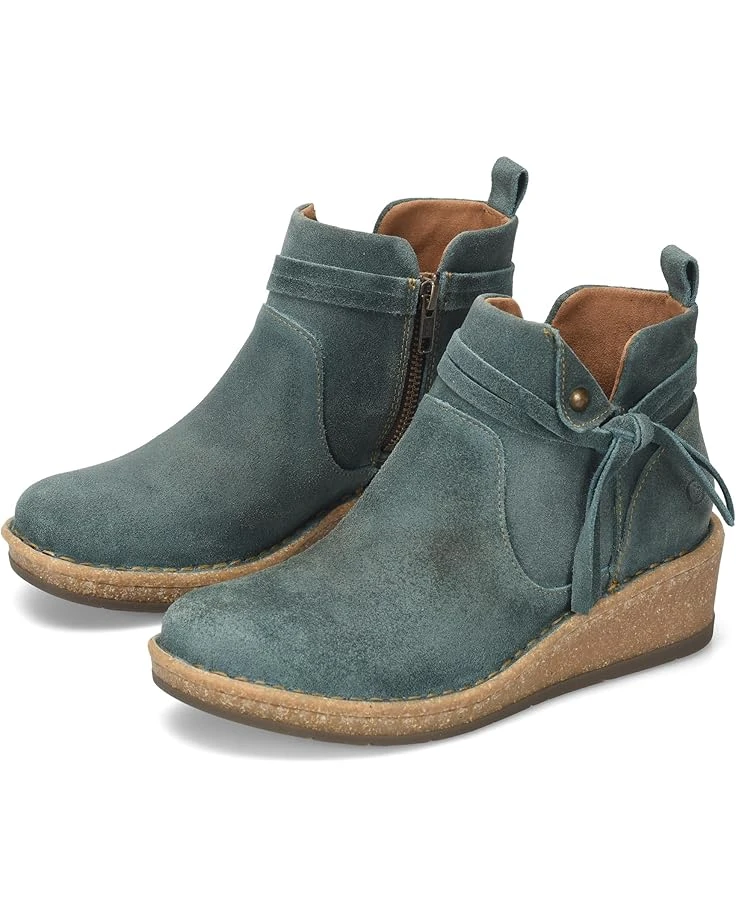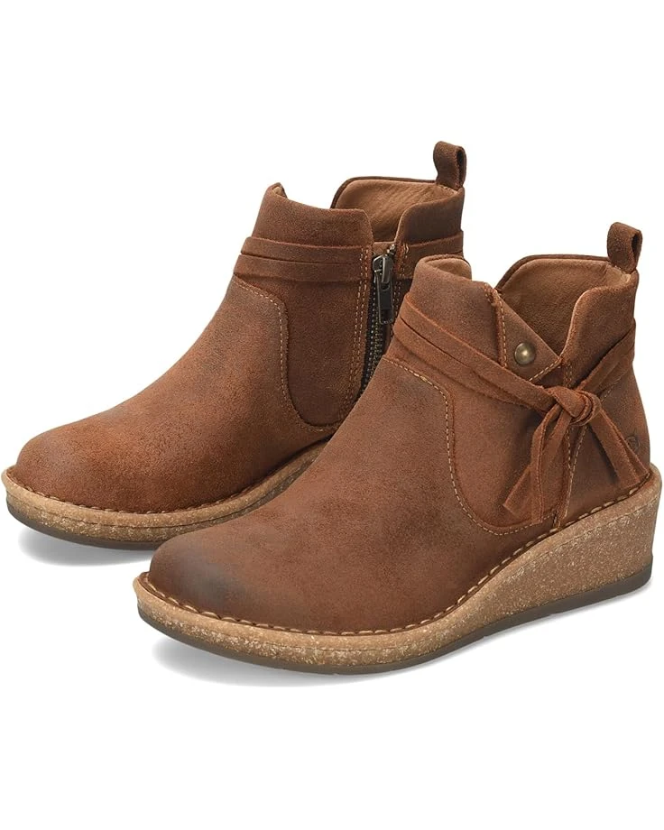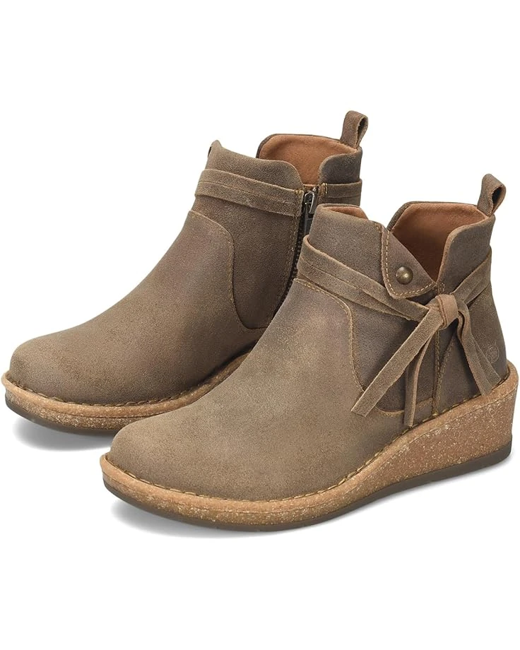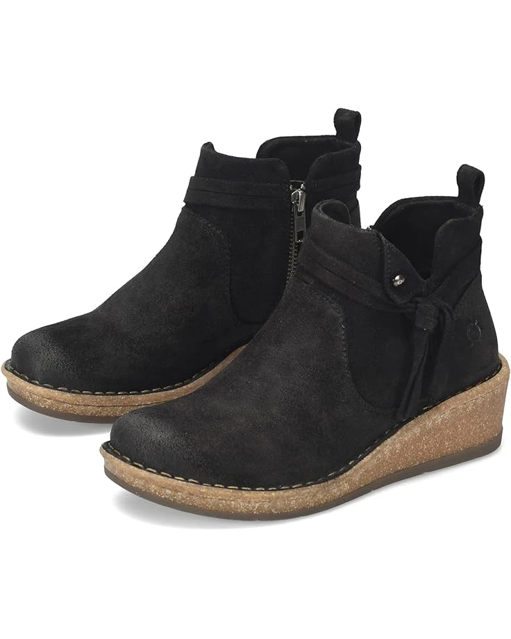 - The Born® Vaughn boots are designed to captivate with their unique details and provide a fashionable lift to your wardrobe. These boots feature Opanka hand-crafted construction that offers durability while the zippered side closure ensures easy on and off. The hand-finished distressed suede leather upper of these boots comes with a heel pull loop. These leather boots are crafted with a breathable soft fabric suede lining and soft fabric suede-covered footbed with extra foam for added comfort. Make a fashionable entry wherever you go wearing these zippered boots.